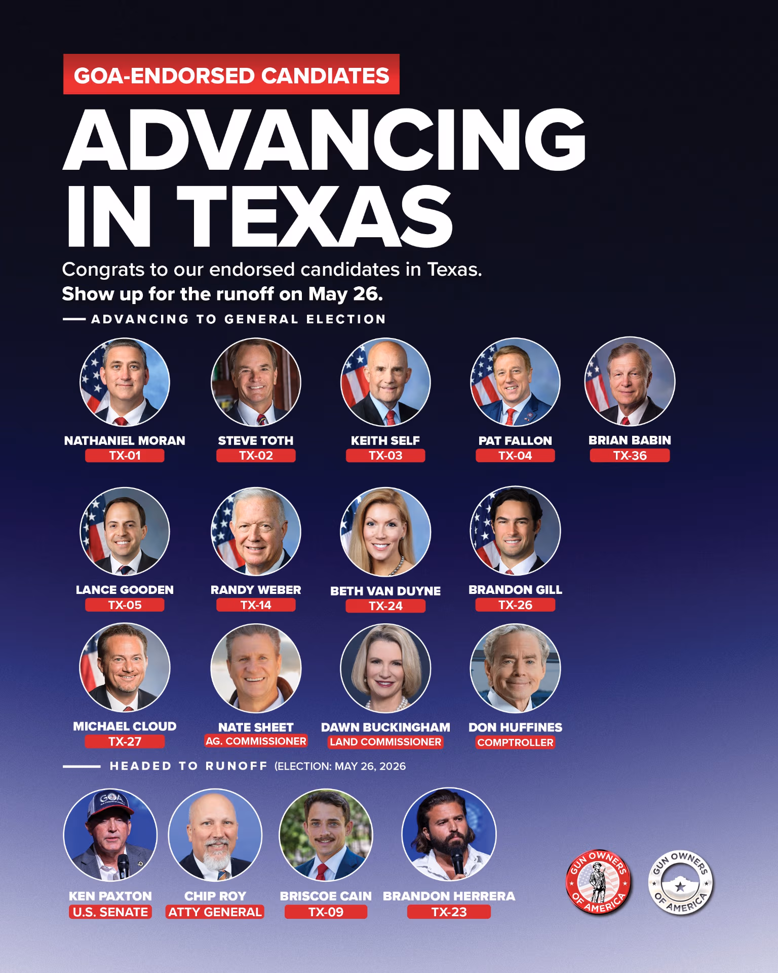 TX: GOA-Endorsed Candidates Score Major Wins in Texas!